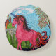 Once Upon a Time Throw Pillow-An original oil painting (print) of a fairytale land with a pink horse/unicorn sitting at the front of a colourful castle, outlined with green hedge plants. Painted in pretty pastel colours just perfect for little girls rooms.