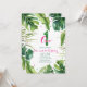 ONE 1 1st Birthday Tropical Leaves Pink Green Invitation