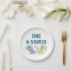 One-A-Saurus themed first birthday party paper plates.