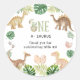 Add prehistoric charm to your party favours with this adorable One-a-saurus dinosaur sticker. Featuring cute watercolor dinosaurs, tropical leaves, and a hatching egg, this sticker is perfect for sealing envelopes, decorating favour bags, or adding a special touch to party décor. Personalise with a thank you message for a dino-mite finishing touch.