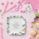 Celebrate your little boy’s first birthday with these adorable dinosaur themed paper plates featuring watercolor dinosaurs and tropical leaves. Perfect for a fun One A Saurus dino party table setting.