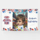 It is time to get the preparations on the spot. Celebrate your baby boy's first birthday on Independence Day with a stars & stripes patriotic theme banner and a customised photo. "One American Dude" adds to the patriotic theme of red, white and blue American Independence day celebration. The design features the elements and theme of American pride with fireworks, ice-cream, macaron, candy, balloons, fun and frolic. Reverse side has a matching artwork.