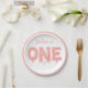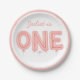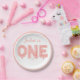 Rosy Pink ONE Balloon party plate, coordinating with matching invitations also in the shop!