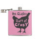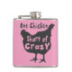 Super cute flask has a silhouette of a chicken and the text "One Chicken Short of Crazy". Makes a Great Gift for the Chicken Lover in Your Life! Put a SMILE on their face :)