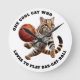 One Cool Cat Who Loves to Play Bas-cat-ball Round Clock