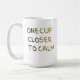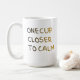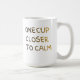 A simple, illustrative text-based design featuring the motivational quote "ONE CUP CLOSER TO CALM." The hand-drawn style typography uses a subtle black to golden-brown gradient against a light gray background, making it perfect for a minimal aesthetic on a sweatshirt, t-shirt, mug, or as a cozy, inspiring graphic for coffee and tea lovers.