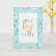 This 5" x 7" folded greeting card features placeholders for any name, and time sober. Two fields for number and length. Examples: one, year; 30, days; 6, months. The non-editable front features the greeting, "One day at a time," in turquoise and orange with an abstract floral green background.