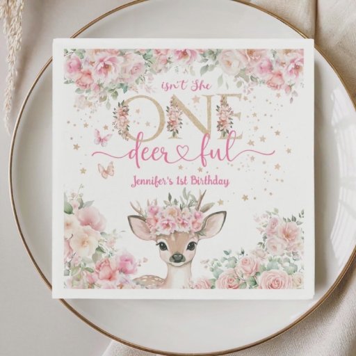 Fall into the magic of your little one's first birthday with our "One-Deer-Ful" 1st Birthday Invitation! Make her first birthday shine, don't wait - create a glittering memory today! Order yours and let's make her birthday celebration unforgettable! Please note: The glitter details are simulated in the artwork. No actual glitter will be used in the making of this product.