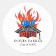 Fun and modern graduation party favour sticker featuring an illustration of a flaming graduation cap. The text says "one degree hotter."