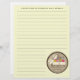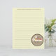 Recipe paper featuring optional lines, which can be removed. Bottom features an illustration of one dozen colourful French macarons in a beige gift box with a delicate brown ribbon. Personalise with your name under illustration. Also personalise text at top.