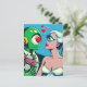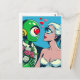 One Eyed Alien Woman and Green Robot in Love Postcard