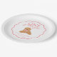 Celebrate your little one's One Golden Year in sweet puppy style with this round paper plate. A scalloped border center that features a hand drawn golden doodle and editable text for your little one's name and first birthday date. Perfect for cake slices, snacks, and photo ready table settings at any golden doodle themed party.
