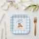Dress up the dessert table with this sweet gingham plate celebrating her One Golden Year. The blue check border frames editable text for your little one's name and party date—just type, save, and you’ve got a photo ready accent for cake slices, snacks, or party favors at their very first birthday bash.