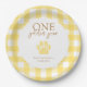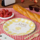 Add a sweet touch to your little one's first birthday with this yellow gingham paper plate, perfect for a golden retriever themed celebration. Featuring the phrase "One Golden Year" and a playful gingham paw print, this design can be personalised with your child’s name and party date. It’s a fun and easy way to tie your green puppy party theme together for snacks, cake, and more.