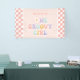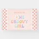 One groovy girl! Retro chequered print with Daisies Birthday party banner in pink.