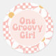 One Groovy girl Pink Daisy Chequered Classic Round Sticker