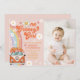 One Groovy Girl Retro Rainbow 1st Birthday Photo Invitation