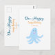 One happy blue octopus under the sea birthday postcard