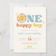 Celebrate your little one's first birthday with our "One Happy Boy" invitation! This minimalist design features a retro font, complemented by a watercolor sun and star accents. Set against a soft vintage white background, the muted colour scheme of blue, orange, and yellow enhances the nostalgic feel. Fully customisable to suit your special day, this invitation is perfect for announcing your boy's milestone celebration.