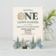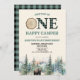 ONE Happy Camper Bear Green 1st Birthday Party Invitation