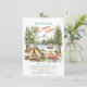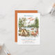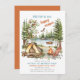 Camping-themed 1st birthday invitation - perfect for a backyard barbecue, picnic, or outdoor birthday party. This watercolor design features a beautiful lake and mountain landscape with a tent, campfire, and various camping items. All text is editable.