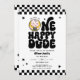 Throw it back in style with this One Happy Dude retro birthday invitation! 🌈🕶️ Featuring a groovy 70s vibe with bold colours and cool black chequered accents, this design is perfect for your rad little dude’s big day. Fun, funky, and fully customisable, it’s the ultimate invite for a stylish and memorable celebration.