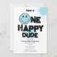 One Happy Dude Invite 1st First Birthday Boy Blue