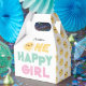 A beautiful hand drawn sun birthday favour box design. A cute "One happy girl" themed first birthday party favour box. A beautiful summer sun birthday favour box theme that can be customised to your details.