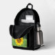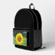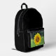 This cheerful backpack is all black except for one front and centre bright photo of a "smiling" Sunflower, courtesy of a well-timed visit by a pair of bees. Fully lined and measuring roughly 17" x 12 x 5", this lightweight backpack is made of durable polyester poplin, has two chambers inside for laptop storage, mesh side pockets, and an ID label. The shoulder straps are padded and adjustable. Feel free to contact me through Zazzle if you have questions about this backpack. I'm happy to help and there's no extra cost.