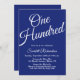 One Hundred Script Navy Blue 100th Birthday Party Invitation