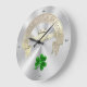 One hundred thousand welcomes (cead mile failte) is the message conveyed on a gold banner with a Claddagh on this 10.75” round acrylic wall clock. Beneath the banner is an image of a beautiful emerald shamrock. Silver orbs mark the 12, 3, 6, and 9 positions. See the entire St. Patrick’s Day Clock collection in the DÉCOR | Clocks section.