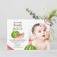 Celebrate your sweet little one’s first birthday with this fun and fruity “One in a Melon” photo invitation! Featuring bright watermelon illustrations, playful seed details, and your baby’s custom photo, this cheerful design is perfect for a summer-themed birthday party. Personalise the name, party details, and RSVP info for a one-of-a-kind celebration. A fresh, adorable way to invite guests to your baby girl’s milestone moment!