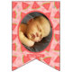 This refreshing and vibrant watermelon theme are great for summer party. This watermelon theme bunting flags are perfect for summertime fun. Celebrate your little ones birthday with uniquely designed watermelon theme photo bunting flags. Customise this photo bunting flags with your text and baby's photo.