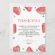 Express your gratitude with our "One In A Melon" Birthday Watermelon Thank You Card. Featuring charming watermelon-themed designs, this card is perfect for showing appreciation to your guests after the celebration. With a playful and cheerful design, it adds a personal touch to your thank you message, making each recipient feel special. Make post-party gratitude extra sweet with this delightful watermelon-themed thank you card.