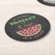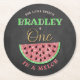 One In A Melon Chalkboard 1st Birthday Round Paper Coaster