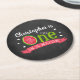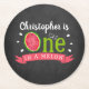 One In A Melon Chalkboard 1st Birthday Round Paper Coaster