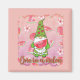 A fun and whimsical design featuring a cute green gnome happily eating a juicy watermelon, paired with the playful pun "One in a Melon." Set against a pastel pink background scattered with watercolor-style watermelon slices, this adorable and vibrant artwork is perfect for summer lovers, fruit enthusiasts, and anyone who enjoys a good pun with a sweet twist!