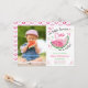 This One in a Melon 1st birthday invitation is perfect for baby's first summer birthday. It features cute watercolor watermelon themed artwork in pink and green. Personalise with a photo of your little one.