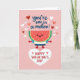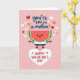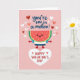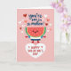 This digital picture perfectly captures the essence of Valentine's Day with its heartfelt message. In the center of the image, a cute watermelon slice with a bright red inside and yellow "seeds" smiles warmly with simple black eyes, adding a cozy touch. Wearing a white and blue striped shirt, this character stands out as the main focus of the artwork.
