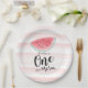 One in a Melon Watercolor Watermelon Stripe Paper Plate