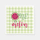 One in a Melon Watermelon first birthday party napkins with melon green plaid back.