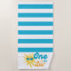 Celebrate a sunny first birthday in the cutest way with this One in the Sun beach towel! Featuring tropical turquoise and white stripes, this towel shines with retro charm — complete with cheerful vintage-style lettering and an adorable sunshine character wearing shades ☀️🕶️. Designed as part of a 1st birthday party collection, it’s perfect for beach or poolside celebrations and makes a sweet, standout prop for those milestone photos. Whether it’s spread out for a picnic, used after a splash in the water, or featured in a fun photo shoot, this towel adds that extra special touch to your “One in the Sun” party theme. A keepsake-worthy piece that brings joy, colour, and sunshine to your little one’s big day 🌊🎉.