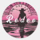 One Last Rodeo Bachelorette, this design features a cowgirl in a retro pink and black sunset look. Ideal for any bachelorette party.
