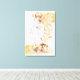 "One Line Face Art with Butterflies, Peach Florals & Gold Accents – Canvas Print"