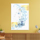 This captivating one line side face art tells a dreamy story through minimal lines and layered textures. A delicate butterfly rests over the eye, while soft blue watercolor flowers bloom behind the figure. Fluid blue paint stains add depth, complemented by elegant gold brush strokes on the upper right and lower left corners. A modern canvas print that evokes grace, transformation, and quiet beauty.