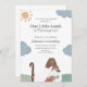 Faith-inspired “One Little Lamb” birthday design featuring Psalm 23:1 with soft watercolor clouds, sunshine, and a shepherd holding a lamb. A gentle Christian theme perfect for a first birthday celebration, baptism-inspired events, and matching keepsake decor.