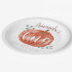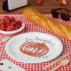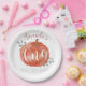 Cute watercolor orange pumpkin with eucalyptus leaves. 1st Birthday party paper plates