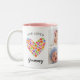 One loved Grammy 4 photo design with a fun multi coloured watercolor hearts. Personalise the side of our cute design with grandchildren names. Visit our shop to view this mug in a large assortment of grandmother names.