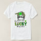One Lucky Dialysis Nurse Messy Bun Shamrock St Pat T-Shirt