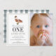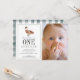 This classic "one lucky duck" boy's 1st/first birthday photo invitation features a white background with a wild duck/mallard The reverse side features a white background with gingham /buffalo checks/plaid in blue grey. Personalise for your needs. You can find more matching products at my store.